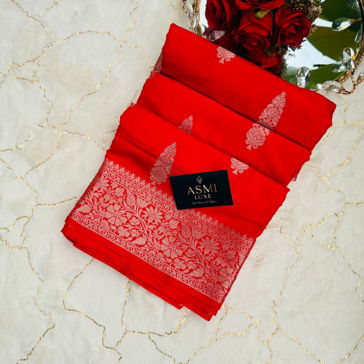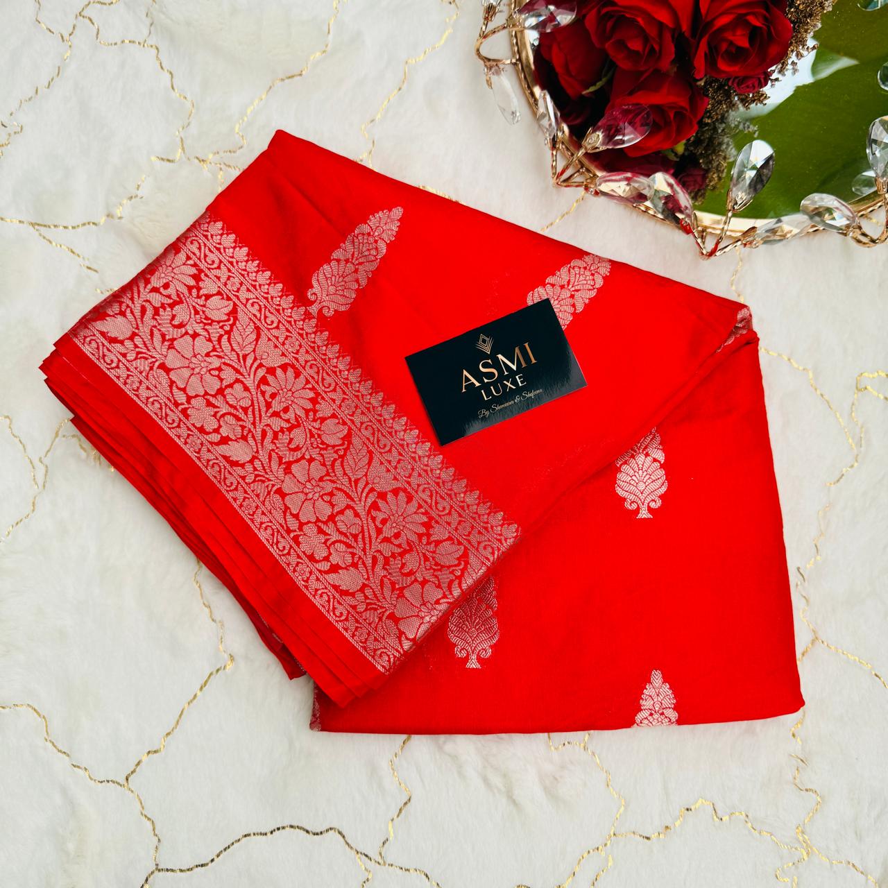 Banarasi Warm Silk Sarees (Jamdani Design, Red)