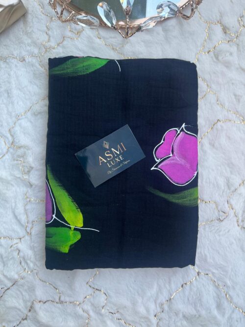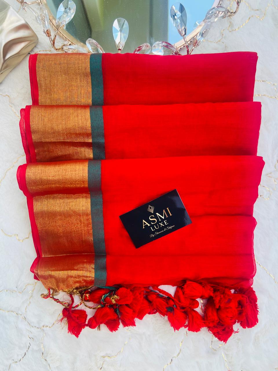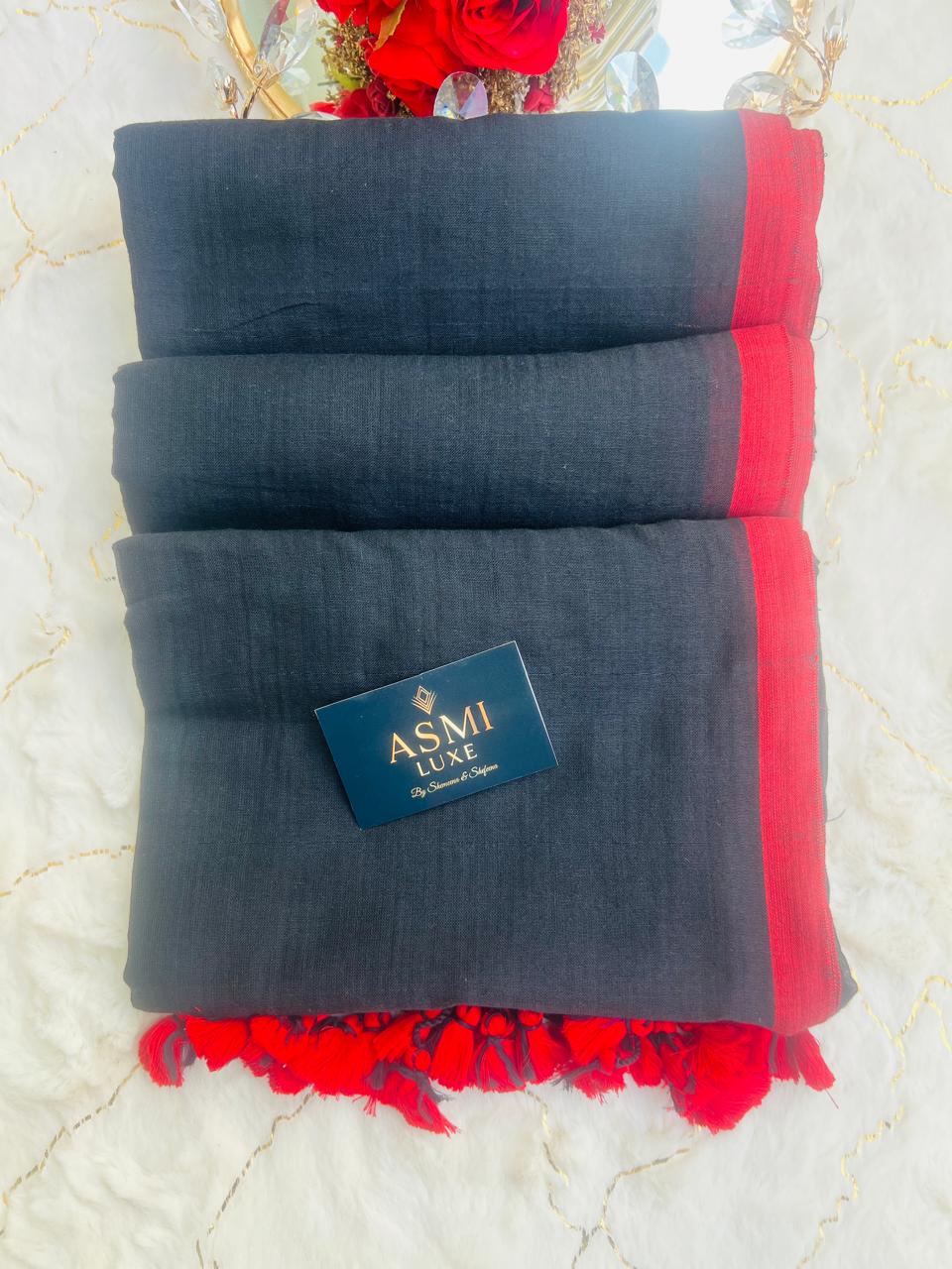 Plane Mulmul Cotton Sarees (Black with red Border)