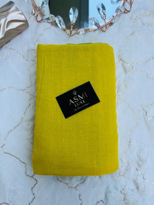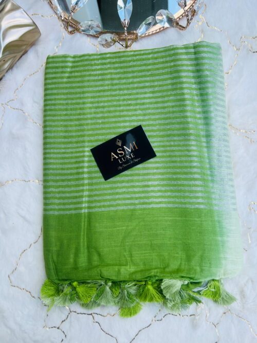 Linen Thread Embroidery Work Saree(Light & Dark Green)