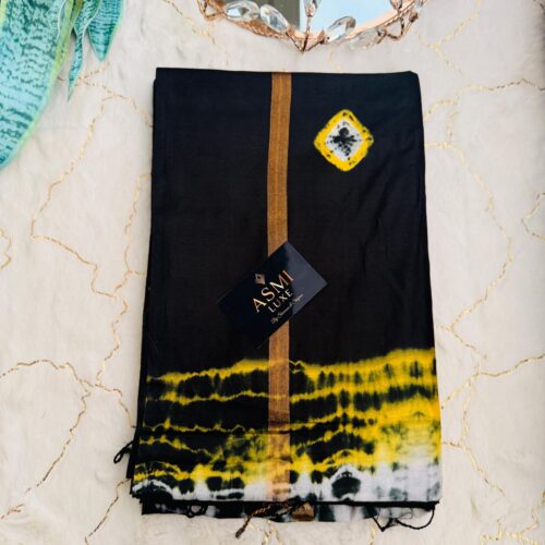 Kota Cotton Shibori Printed Saree (Black&Yellow)