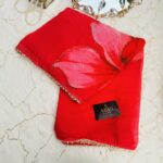 This Soft and Smooth weightless Chiffon floral digital print saree comes with beautiful handwork and hand work moti lace border. With its all over work and versatile design, the Chiffon floral digital saree blends traditional charm with modern flair, ensuring you stand out on any occasions.