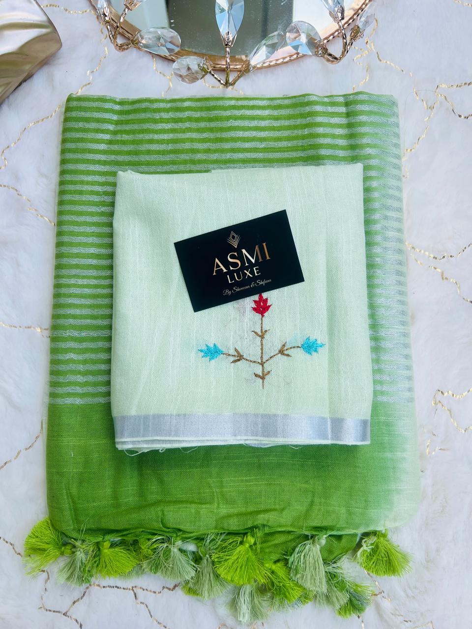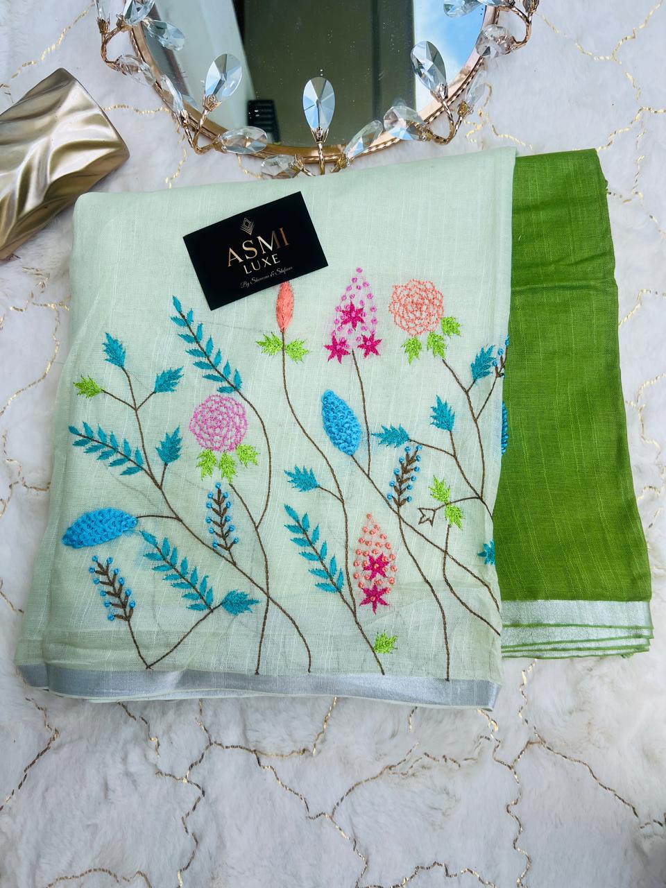 Linen Thread embroidery sarees authentic and exclusive wear for all occasions.