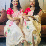 This Floral printed Soft Organza saree blends classic beauty with modern elegance. This beautiful piece with printed lotus motifs highlighted through cut-dana, sitara, pearls and Zari along with a beautiful and delicate scallop hand-embroidery border.