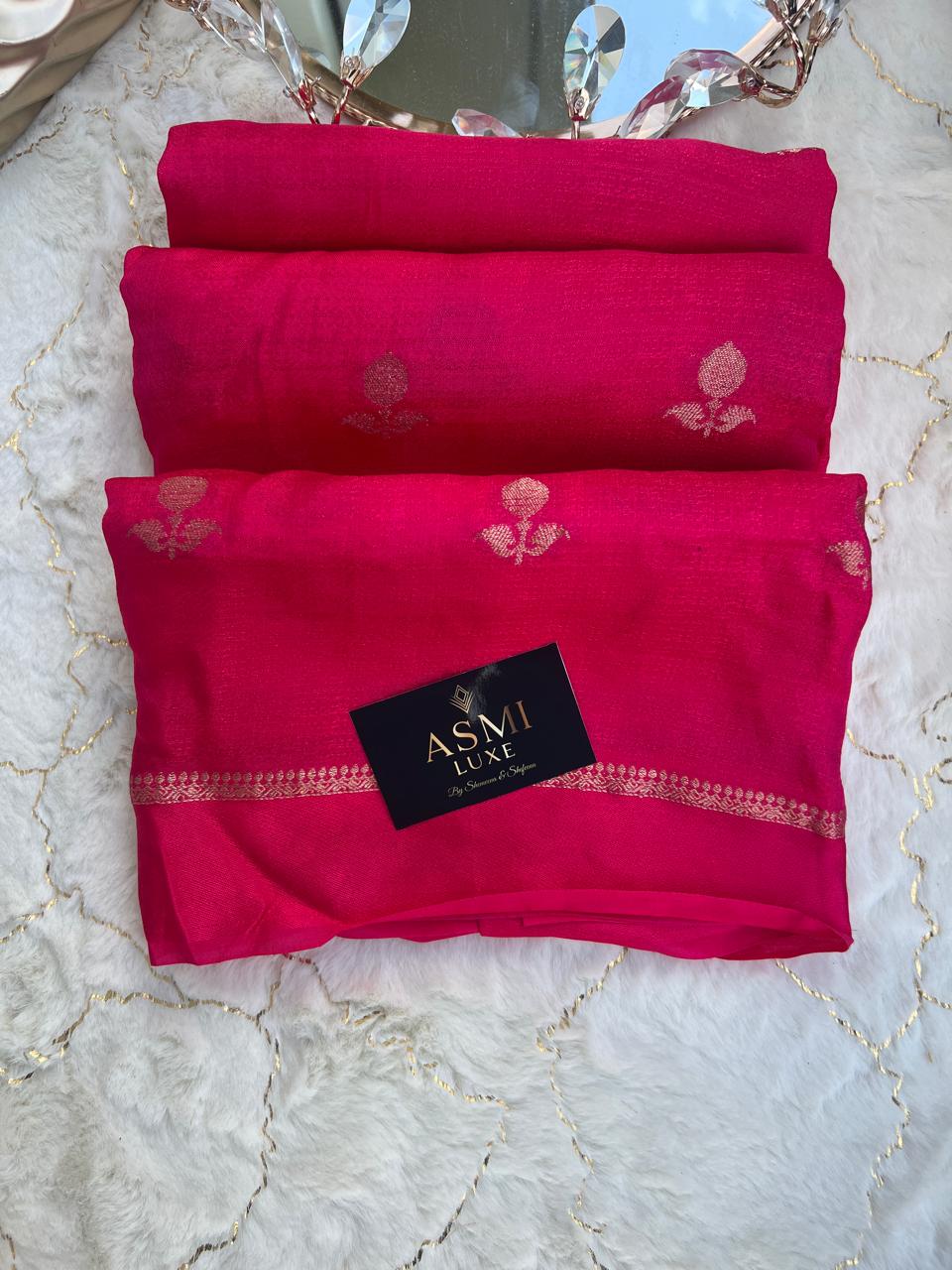 The running blouse in matching fabric ensure styling ease while the breathable texture of khadi silk keeps you comfortable all day long. Whether its a celebration, traditional event, or special evening, this saree is designed to make you look effortlessly elegant.